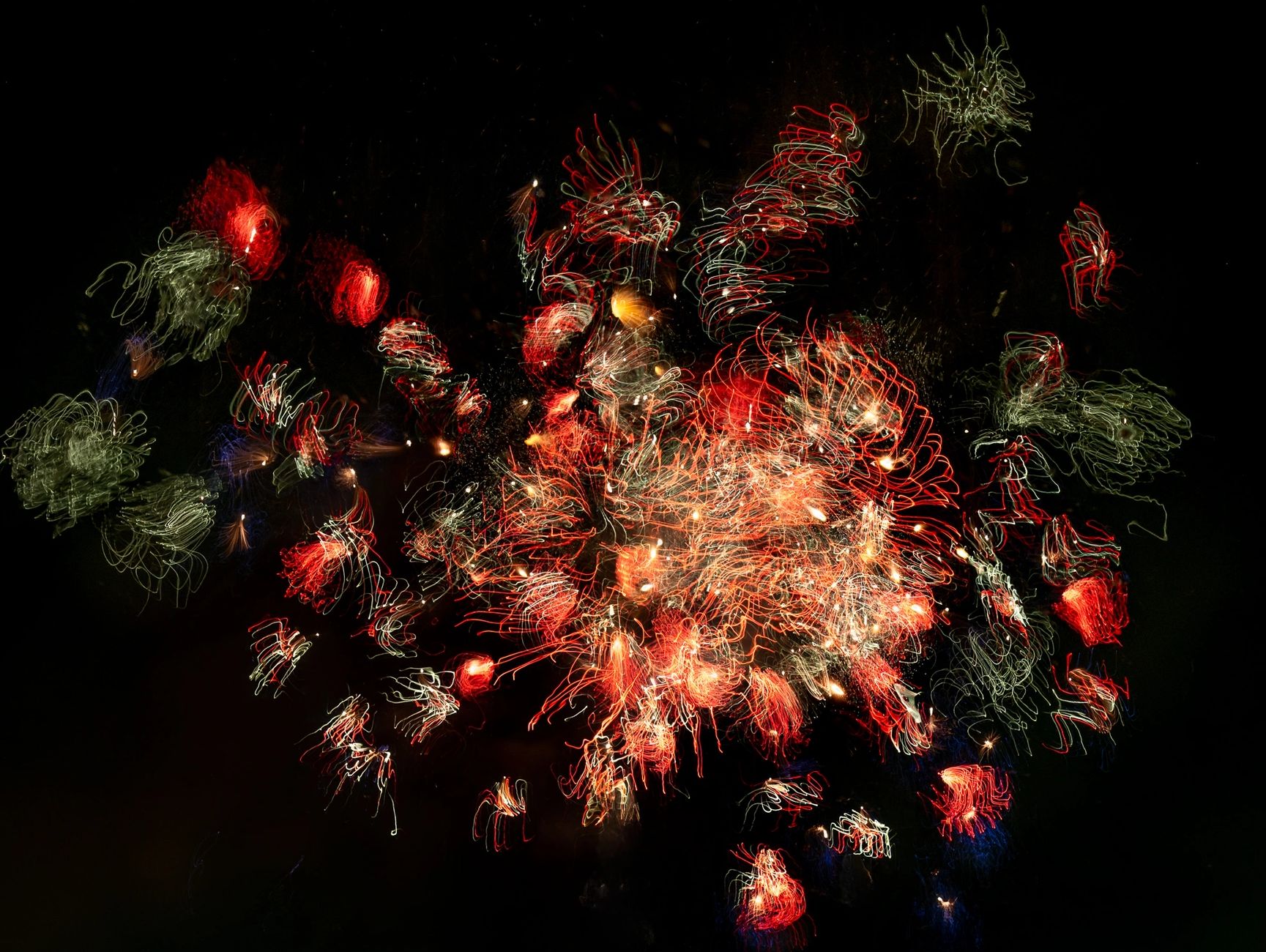 焰火是节日和庆祝活动中的重要节目。我们可以应用不同的拍摄方法拍出不同特点的焰火。间隔拍摄最省力,调好光圈快门,拍摄由相机自动完成;慢门加强拉丝效果;B门随时调整,根据发射和爆破时间让不同焰火的同窗;一次拍摄过程中多次聚,脱焦造成特殊效果;利用前景交代故事;利用较快快门可以拍出星星点点和特殊形状。当然你也可以拍出人文,环境和鸟类保护的片子。